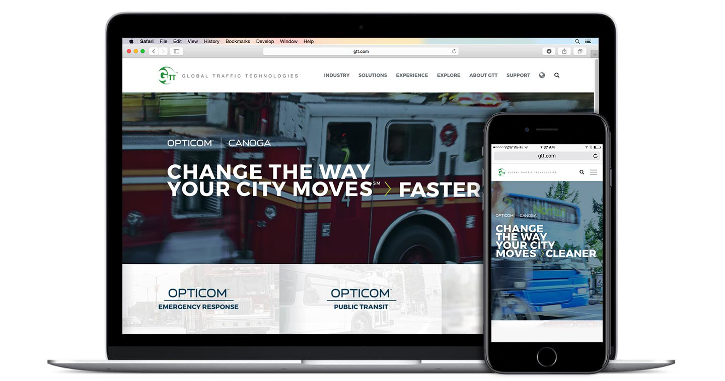 About: Global Traffic Technologies (GTT) is a 3M spin off that designs and manufacturers traffic signal preemption devices. When an ambulance comes to an intersection and the light magically turns green, that is GTT's technology at work. The company decided to overhaul their website. Objectives for the redesign were to modernize the look, position content offers prominently for more conversions and update the backend platform.